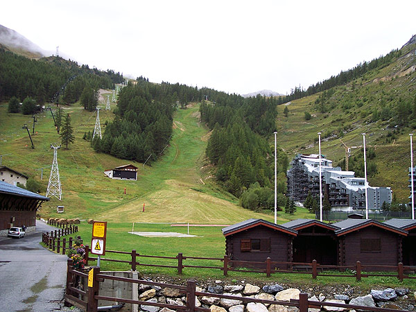 auf die nun trockene Abfahrt. Im im Sommer ausgestorbenen Val