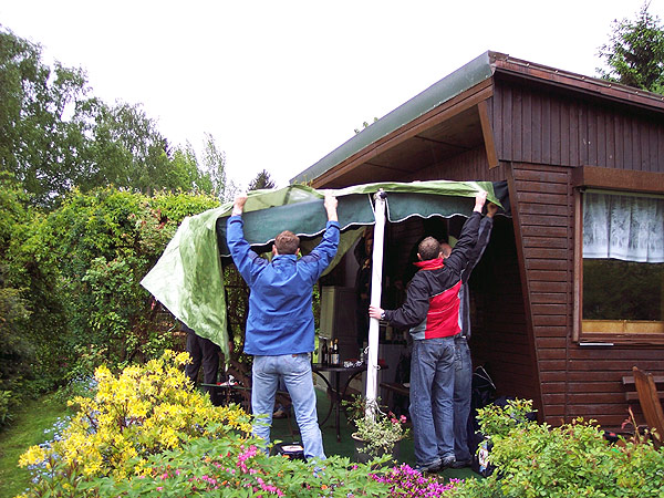 ca. 1,5 km zu Jens' Garten. Dort verbrachten wir dann den ganzen verregneten