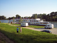 ruhig direkt an der Donau im Zelt liegend ein. |