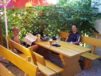 einem schönen Biergarten direkt an der Steinernen Brücke an der