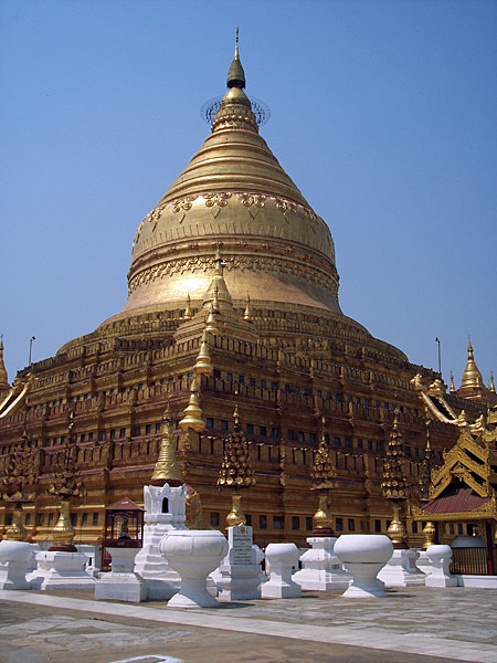 die Shwezigon Pagode ist das goldenste Bauwerk im Tempelfeld um Bagan