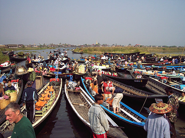der quirlige Markt in Nampan, am Ufer des Inle Sees
