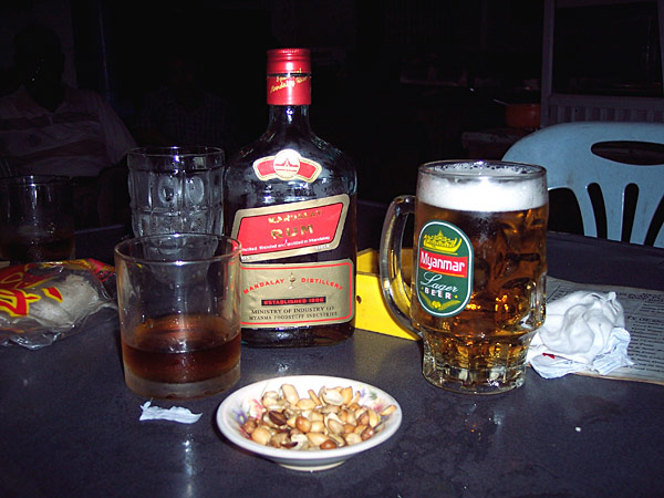 ein paar Myanmar Beer und Mandalay Rum
