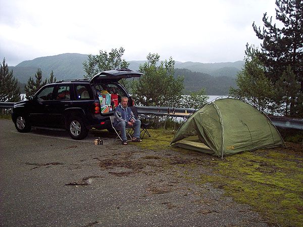 unsere Hütte auf dem Nesjartun Campinplatz am Hornidalsvatn |