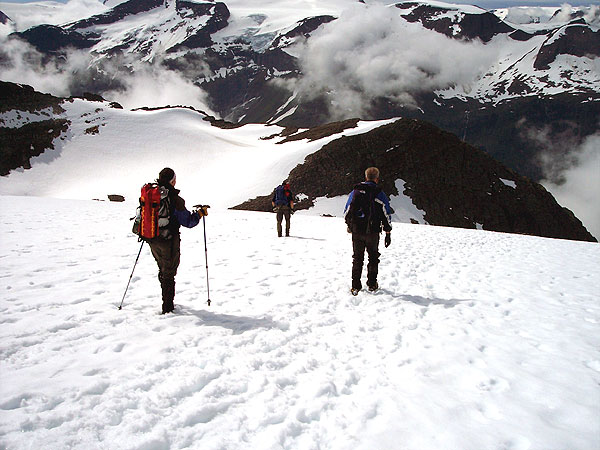 stapfen durch die ersten Schneefelder |