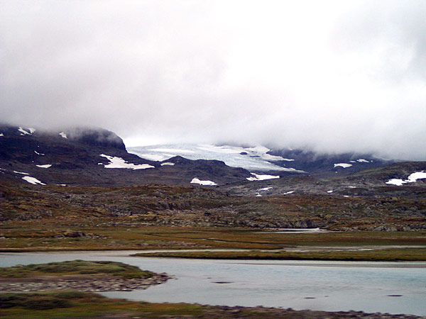 der Blick auf den Hardangerjøkulen, 1876 m hocher Gletscherberg |