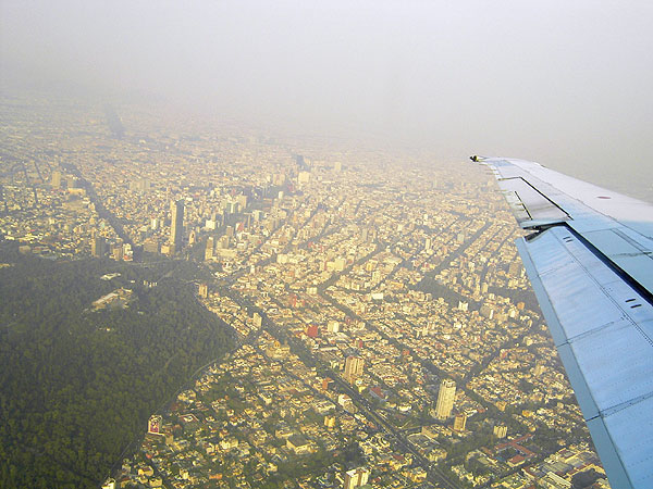 Mexiko City beim Anflug, Häuser soweit das Auge reicht