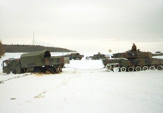 mein "lustigstes" Erlebnis, den LKW festgefahren und vom Panzer befreit |
